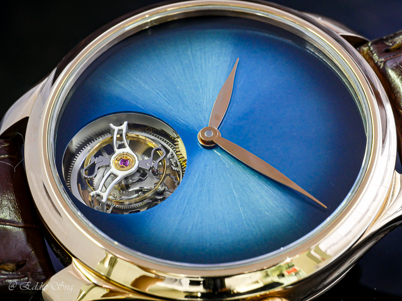 The difference between the "regular" version and this Black & Pink version is the clear centre featuring a translucent sapphire glass showing off the moonphase disc.
