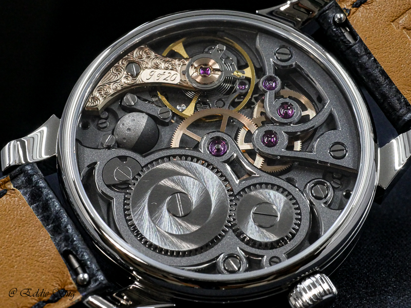 Using the UNITAS base movement, Felipe designed a module for the moonphase and inverted it to the dial side for easy visuals and adjustments.
